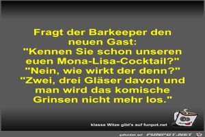 | Fragt der Barkeeper den neuen Gast Bild (43.46 KB) 5Lustiges → klasse Sprüche und Witze | Lustiges → klasse Sprüche und Witze | 16.07.23-13:10 | Fossy | |