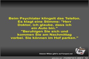 | Beim Psychiater klingelt das Telefon Bild (33.55 KB) 2Lustiges → klasse Sprüche und Witze | Lustiges → klasse Sprüche und Witze | 15.07.23-14:04 | Fossy | |