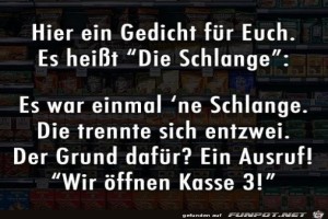 | Die Schlange Bild (89.89 KB) 8Lustiges → klasse Sprüche und Witze | Lustiges → klasse Sprüche und Witze | 16.07.23-09:10 | ||