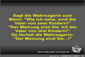 | Sagt die Wahrsagerin zum Mann Bild (40.83 KB) 2Lustiges → klasse Sprüche und Witze | Lustiges → klasse Sprüche und Witze | 13.07.23-18:21 | Fossy | |