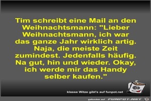 | Tim schreibt eine Mail an den Weihnachtsmann Bild (48.79 KB) 2Lustiges → klasse Sprüche und Witze | Lustiges → klasse Sprüche und Witze | 20.06.23-14:29 | Fossy | |