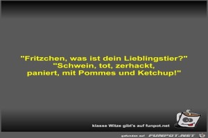 | Fritzchen, was ist dein Lieblingstier? Bild (21.81 KB) 5Lustiges → klasse Sprüche und Witze | Lustiges → klasse Sprüche und Witze | 19.06.23-17:10 | Fossy | |