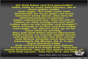 | Als Gott Adam und Eva geschaffen hatte Bild (88.16 KB) 3Lustiges → klasse Sprüche und Witze | Lustiges → klasse Sprüche und Witze | 16.06.23-09:46 | Fossy | |