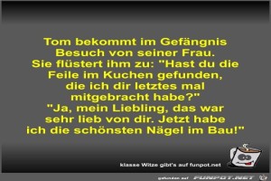 | Tom bekommt im Gefängnis Besuch von seiner Frau Bild (44.57 KB) 8Lustiges → klasse Sprüche und Witze | Lustiges → klasse Sprüche und Witze | 15.06.23-11:55 | Fossy | |