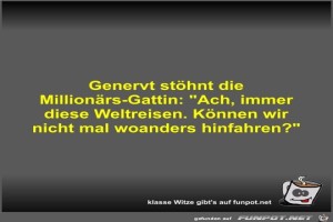 | Genervt stöhnt die Millionärs-Gattin Bild (26.83 KB) 2Lustiges → klasse Sprüche und Witze | Lustiges → klasse Sprüche und Witze | 12.06.23-19:07 | Fossy | |