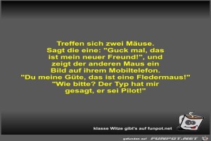 | Treffen sich zwei Mäuse Bild (32.67 KB) 5Lustiges → klasse Sprüche und Witze | Lustiges → klasse Sprüche und Witze | 09.06.23-18:23 | Fossy | |