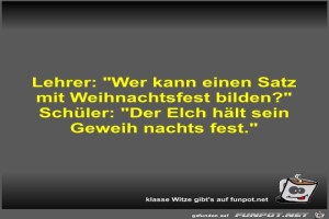 | Lehrer: Wer kann einen Satz mit Weihnachtsfest bilden? Bild (28.13 KB) 1Lustiges → klasse Sprüche und Witze | Lustiges → klasse Sprüche und Witze | 10.06.23-19:55 | Fossy | |