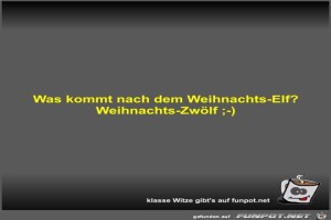 | Was kommt nach dem Weihnachts-Elf? Bild (16.9 KB) 1Lustiges → klasse Sprüche und Witze | Lustiges → klasse Sprüche und Witze | 10.06.23-11:25 | Fossy | |
