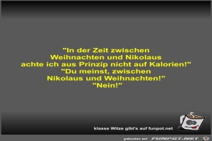 | In der Zeit zwischen Weihnachten und Nikolaus achte ich... Bild (25.41 KB) 1Lustiges → klasse Sprüche und Witze | Lustiges → klasse Sprüche und Witze | 12.06.23-11:36 | Fossy | |