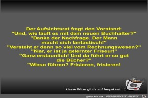 | Der Aufsichtsrat fragt den Vorstand Bild (39.74 KB) 4Lustiges → klasse Sprüche und Witze | Lustiges → klasse Sprüche und Witze | 09.06.23-14:55 | Fossy | |