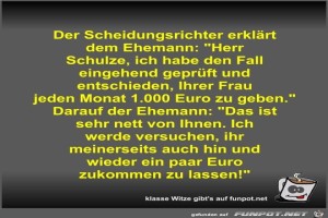 | Der Scheidungsrichter erklärt dem Ehemann Bild (48.95 KB) 5Lustiges → klasse Sprüche und Witze | Lustiges → klasse Sprüche und Witze | 07.06.23-11:03 | Fossy | |