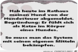 | Hundesteuer Bild (31.81 KB) 16Lustiges → klasse Sprüche und Witze | Lustiges → klasse Sprüche und Witze | 07.06.23-09:38 | Keule56 | |