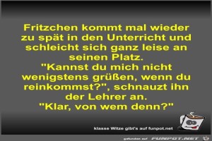 | Fritzchen kommt mal wieder zu spät in den Unterricht und... Bild (46.74 KB) 2Lustiges → klasse Sprüche und Witze | Lustiges → klasse Sprüche und Witze | 03.06.23-15:09 | Fossy | |