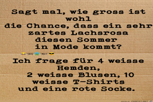 | Lachsrosa RAL 3022 Bild (1.36 MB) 7Lustiges → klasse Sprüche und Witze | Lustiges → klasse Sprüche und Witze | 29.05.23-21:14 | Bonobo666 | |