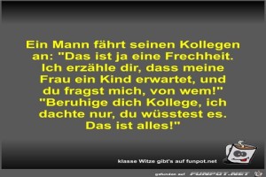 | Ein Mann fährt seinen Kollegen an Bild (42.32 KB) 2Lustiges → klasse Sprüche und Witze | Lustiges → klasse Sprüche und Witze | 30.05.23-13:18 | Fossy | |