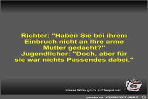 | Richter: Haben Sie bei ihrem Einbruch nicht an Ihre arme... Bild (29.67 KB) 3Lustiges → klasse Sprüche und Witze | Lustiges → klasse Sprüche und Witze | 28.05.23-10:06 | Fossy | |