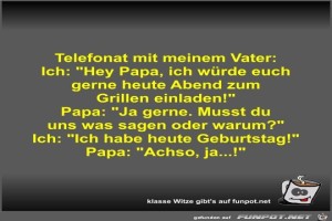 | Telefonat mit meinem Vater Bild (39.47 KB) 3Lustiges → klasse Sprüche und Witze | Lustiges → klasse Sprüche und Witze | 28.05.23-18:52 | Fossy | |