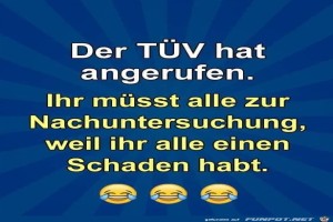 | Der TÜV Bild (80.09 KB) 9Lustiges → klasse Sprüche und Witze | Lustiges → klasse Sprüche und Witze | 29.05.23-07:11 | Keule56 | |