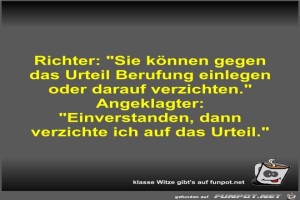 | Richter: Sie können gegen das Urteil Berufung einlegen... Bild (36.1 KB) 3Lustiges → klasse Sprüche und Witze | Lustiges → klasse Sprüche und Witze | 27.05.23-17:09 | Fossy | |