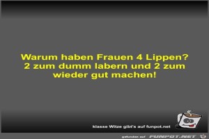 | Warum haben Frauen 4 Lippen? Bild (22.96 KB) 4Lustiges → klasse Sprüche und Witze | Lustiges → klasse Sprüche und Witze | 23.05.23-19:01 | Fossy | |
