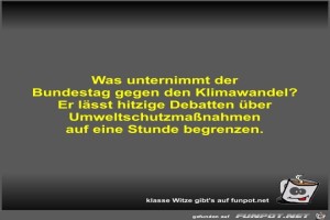 | Was unternimmt der Bundestag gegen den Klimawandel? Bild (28.15 KB) 3Lustiges → klasse Sprüche und Witze | Lustiges → klasse Sprüche und Witze | 22.05.23-19:05 | Fossy | |