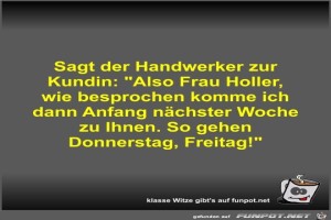 | Sagt der Handwerker zur Kundin Bild (35.69 KB) 4Lustiges → klasse Sprüche und Witze | Lustiges → klasse Sprüche und Witze | 18.05.23-17:50 | Fossy | |