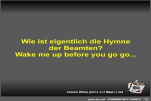 | Wie ist eigentlich die Hymne der Beamten? Bild (22.03 KB) 4Lustiges → klasse Sprüche und Witze | Lustiges → klasse Sprüche und Witze | 17.05.23-18:25 | Fossy | |