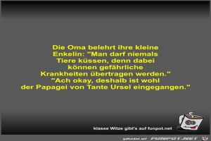 | Die Oma belehrt ihre kleine Enkelin Bild (29.81 KB) 2Lustiges → klasse Sprüche und Witze | Lustiges → klasse Sprüche und Witze | 13.05.23-10:31 | Fossy | |