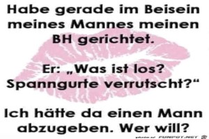 | Mann abzugeben Bild (44.63 KB) 7Lustiges → klasse Sprüche und Witze | Lustiges → klasse Sprüche und Witze | 10.05.23-08:38 | Keule56 | |