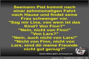 | Seemann Piet kommt nach einer zehnmonatigen Fahrt nach... Bild (54.54 KB) 4Lustiges → klasse Sprüche und Witze | Lustiges → klasse Sprüche und Witze | 10.05.23-20:24 | Fossy | |
