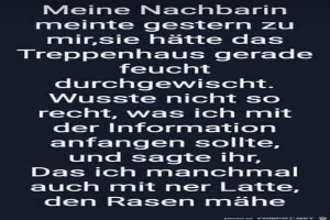 | Meine Nachbarin Bild (154.21 KB) 8Lustiges → klasse Sprüche und Witze | Lustiges → klasse Sprüche und Witze | 27.04.23-09:48 | ||