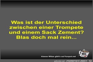 | Was ist der Unterschied zwischen einer Trompete und einem... Bild (29.43 KB) 3Lustiges → klasse Sprüche und Witze | Lustiges → klasse Sprüche und Witze | 27.04.23-10:49 | Fossy | |