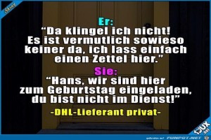 | DHL-Lieferant Bild (73.15 KB) 10Lustiges → klasse Sprüche und Witze | Lustiges → klasse Sprüche und Witze | 27.04.23-09:49 | Keule56 | |