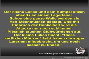 | Der kleine Lukas und sein Kumpel sitzen abends an einem... Bild (55.82 KB) 5Lustiges → klasse Sprüche und Witze | Lustiges → klasse Sprüche und Witze | 28.04.23-11:52 | Fossy | |