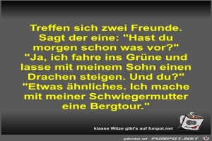 | Treffen sich zwei Freunde Bild (48.82 KB) 5Lustiges → klasse Sprüche und Witze | Lustiges → klasse Sprüche und Witze | 18.04.23-13:37 | Fossy | |