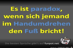 | Paradox Bild (67.93 KB) 8Lustiges → klasse Sprüche und Witze Ich würde sagen, paradox ist der richtige Ausdruck für diesen Ausspruch. | Lustiges → klasse Sprüche und Witze | 19.04.23-14:43 | ||