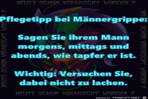 | Männergrippe Bild (53.34 KB) 7Lustiges → klasse Sprüche und Witze | Lustiges → klasse Sprüche und Witze | 20.04.23-09:21 | ||