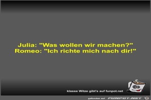 | Julia: Was wollen wir machen? Bild (18.75 KB) 4Lustiges → klasse Sprüche und Witze | Lustiges → klasse Sprüche und Witze | 10.04.23-13:59 | Fossy | |