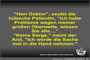 | "Herr Doktor", seufzt die hübsche Patientin, "ich habe... Bild (43.52 KB) 2Lustiges → klasse Sprüche und Witze | Lustiges → klasse Sprüche und Witze | 12.04.23-10:54 | Fossy | |