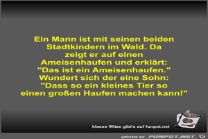 | Ein Mann ist mit seinen beiden Stadtkindern im Wald Bild (38.2 KB) 5Lustiges → klasse Sprüche und Witze | Lustiges → klasse Sprüche und Witze | 07.04.23-15:06 | Fossy | |