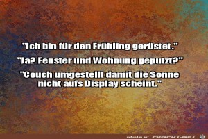 | Gerüstet für den Frühling Bild (210.07 KB) 6Lustiges → klasse Sprüche und Witze | Lustiges → klasse Sprüche und Witze | 07.04.23-09:06 | ||
