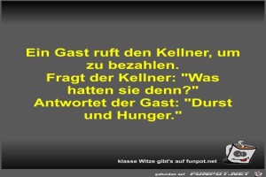 | Ein Gast ruft den Kellner Bild (31.37 KB) 4Lustiges → klasse Sprüche und Witze | Lustiges → klasse Sprüche und Witze | 07.04.23-11:30 | Fossy | |