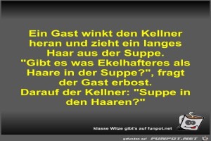 | Ein Gast winkt den Kellner heran und zieht ein langes Haar Bild (43.02 KB) 5Lustiges → klasse Sprüche und Witze | Lustiges → klasse Sprüche und Witze | 31.03.23-13:55 | Fossy | |