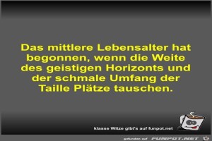| Das mittlere Lebensalter hat begonnen Bild (33.13 KB) 12Lustiges → klasse Sprüche und Witze | Lustiges → klasse Sprüche und Witze | 01.04.23-10:06 | Fossy | |