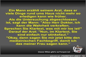 | Ein Mann erzählt seinem Arzt Bild (58.26 KB) 10Lustiges → klasse Sprüche und Witze | Lustiges → klasse Sprüche und Witze | 01.04.23-12:50 | Fossy | |