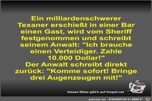 | Ein milliardenschwerer Texaner erschießt in einer Bar einen Bild (50.74 KB) 9Lustiges → klasse Sprüche und Witze | Lustiges → klasse Sprüche und Witze | 31.03.23-18:21 | Fossy | |