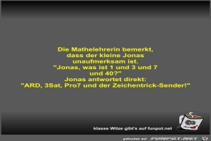 | Die Mathelehrerin bemerkt Bild (25.38 KB) 4Lustiges → klasse Sprüche und Witze | Lustiges → klasse Sprüche und Witze | 31.03.23-11:08 | Fossy | |