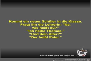 | Kommt ein neuer Schüler in die Klasse Bild (25.92 KB) 6Lustiges → klasse Sprüche und Witze | Lustiges → klasse Sprüche und Witze | 28.03.23-12:28 | Fossy | |