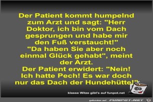 | Der Patient kommt humpelnd zum Arzt und sagt Bild (52.94 KB) 4Lustiges → klasse Sprüche und Witze | Lustiges → klasse Sprüche und Witze | 21.03.23-10:50 | Fossy | |