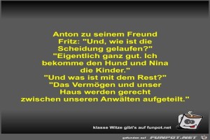 | Anton zu seinem Freund Fritz Bild (38.02 KB) 6Lustiges → klasse Sprüche und Witze | Lustiges → klasse Sprüche und Witze | 18.03.23-12:19 | Fossy | |